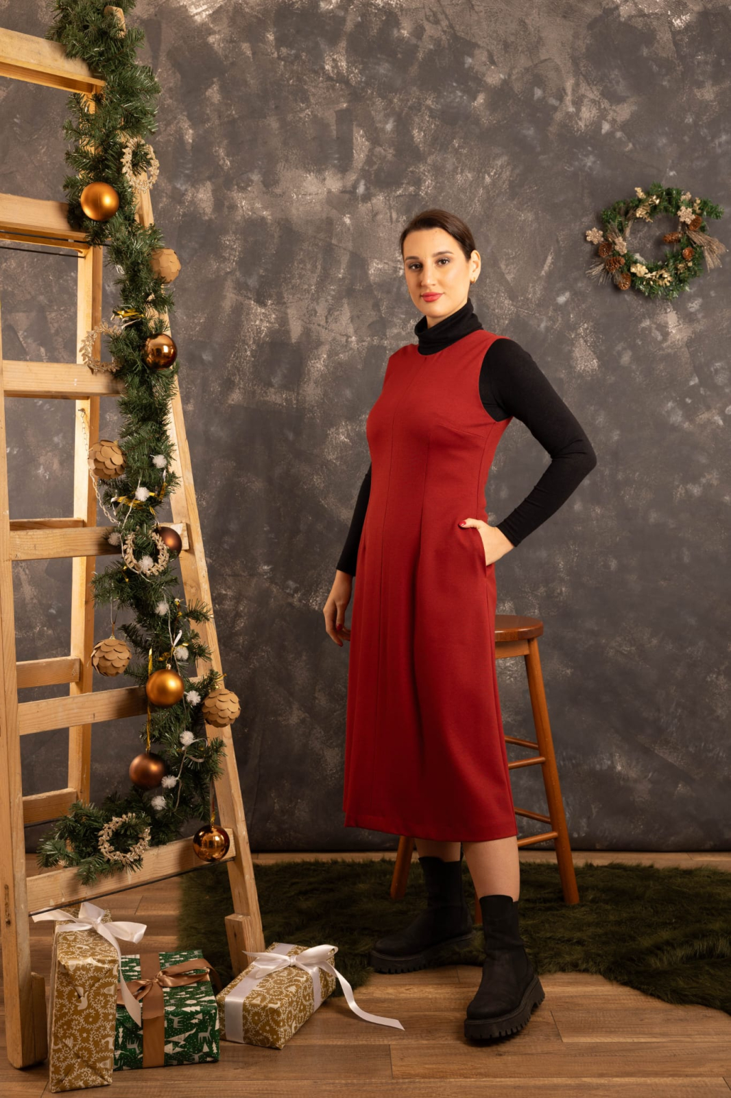 Sarafanul este ușor de accesorizat și potrivit pentru birou, întâlniri, evenimente de zi sau plimbări. Croiala midi îl face comod și elegant în același timp.