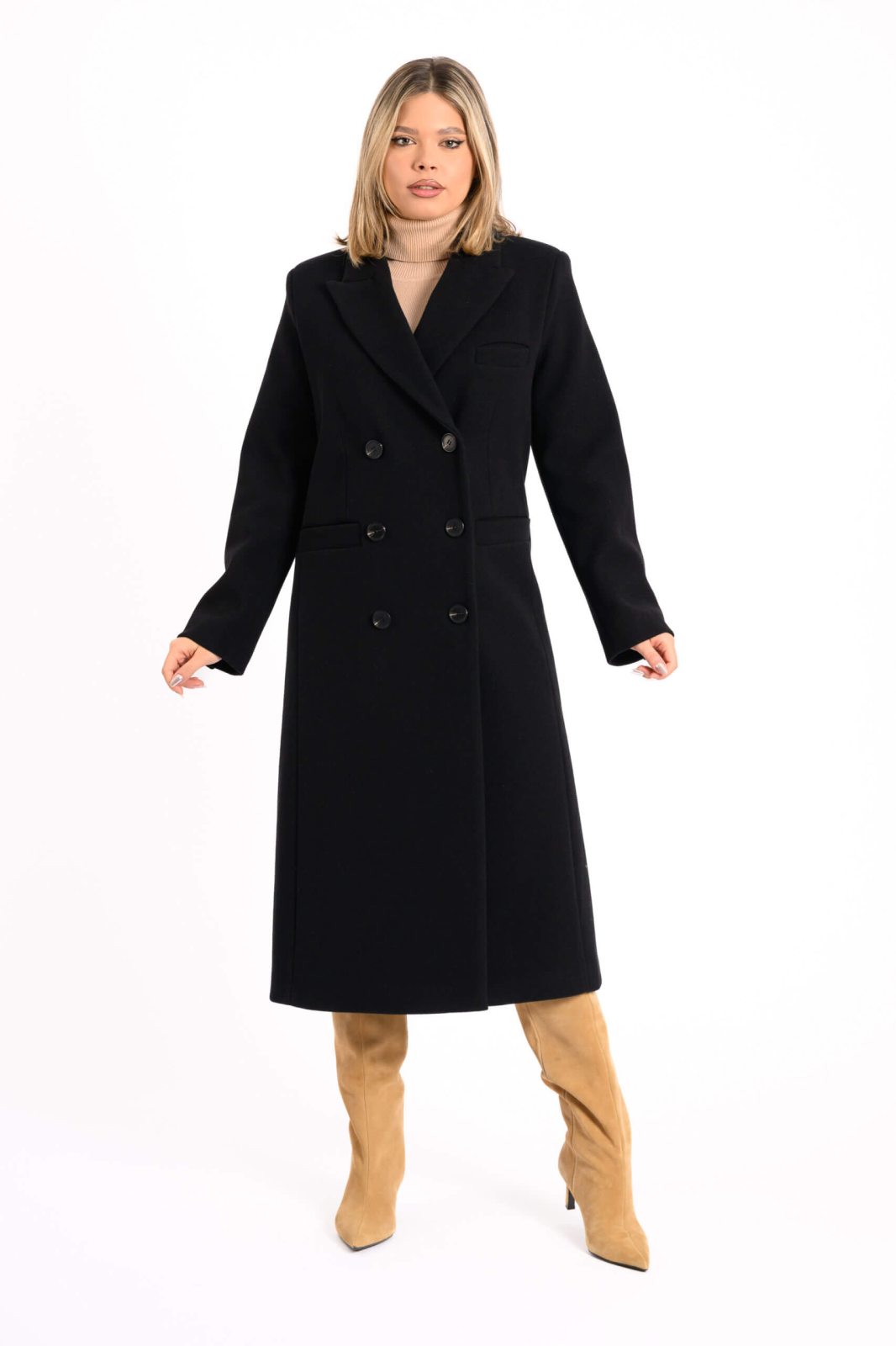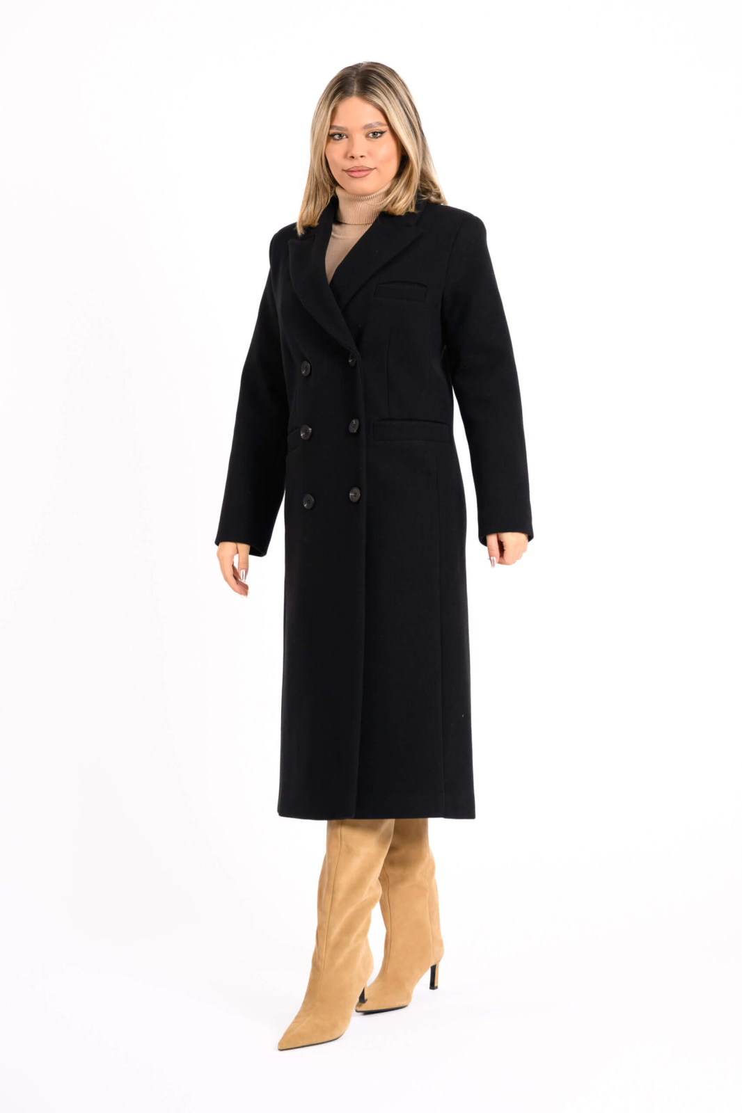Acest palton lung pentru damă îmbină eleganța clasică cu rafinamentul modern. Croiala dreapta confera un aspect modern si rafinat , iar nasturii decorativi adaugă un plus de stil. Materialul din stofă premium oferă căldură și confort, menținând în același timp o linie feminină și sofisticată.