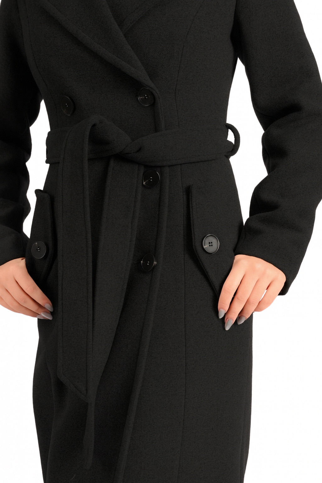 Materialul din stofă caldă oferă confort excelent în sezonul rece, iar închiderea cu nasturi dubli adaugă un plus de structură și eleganță.