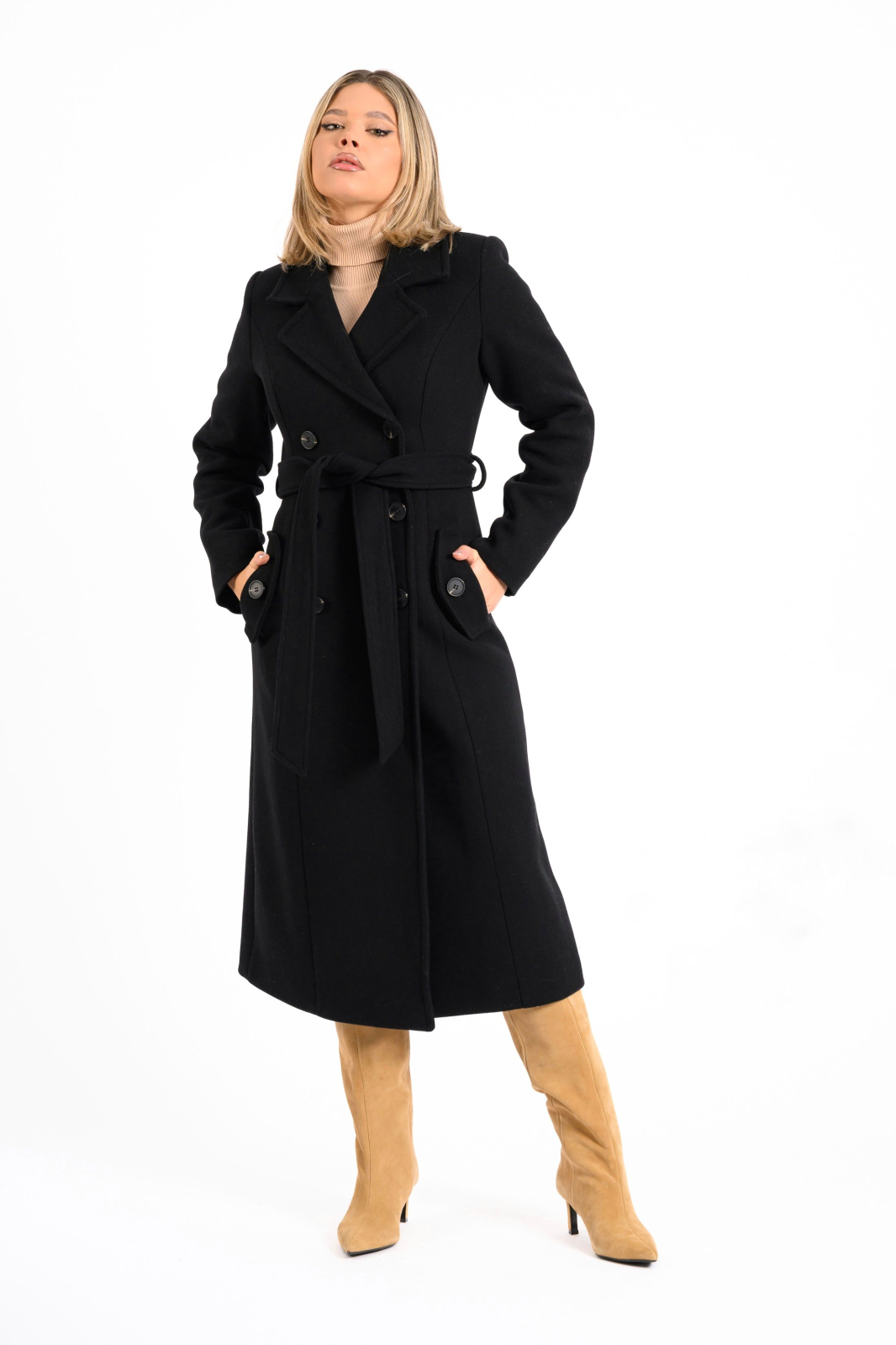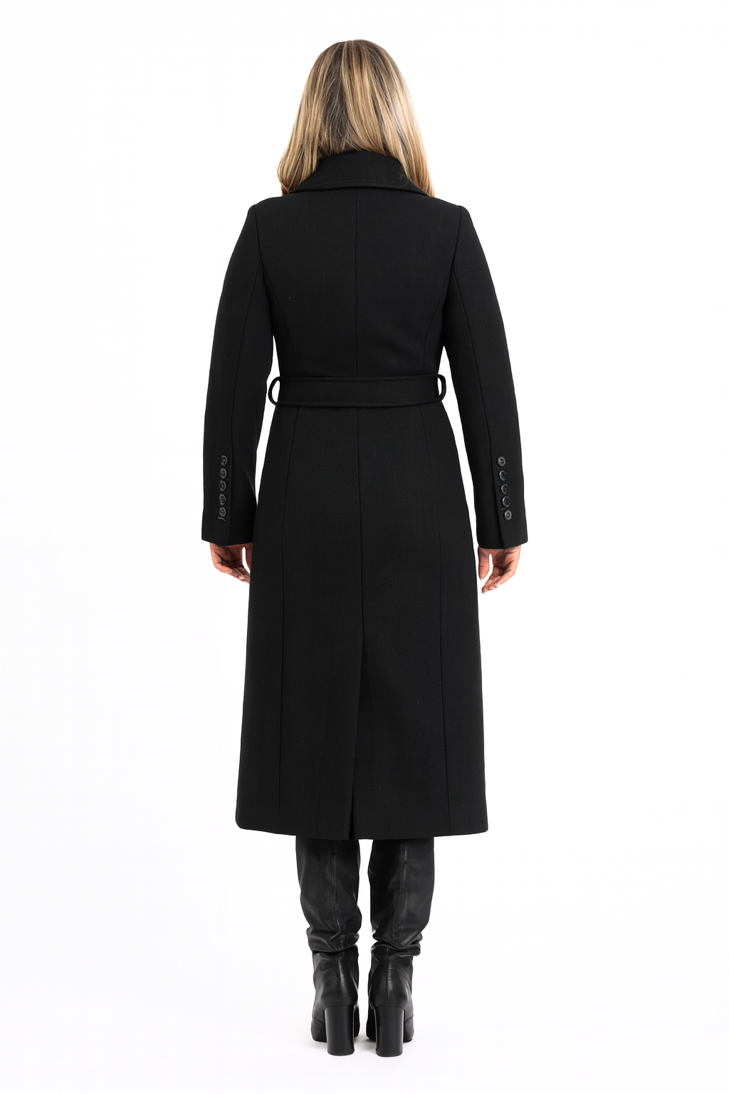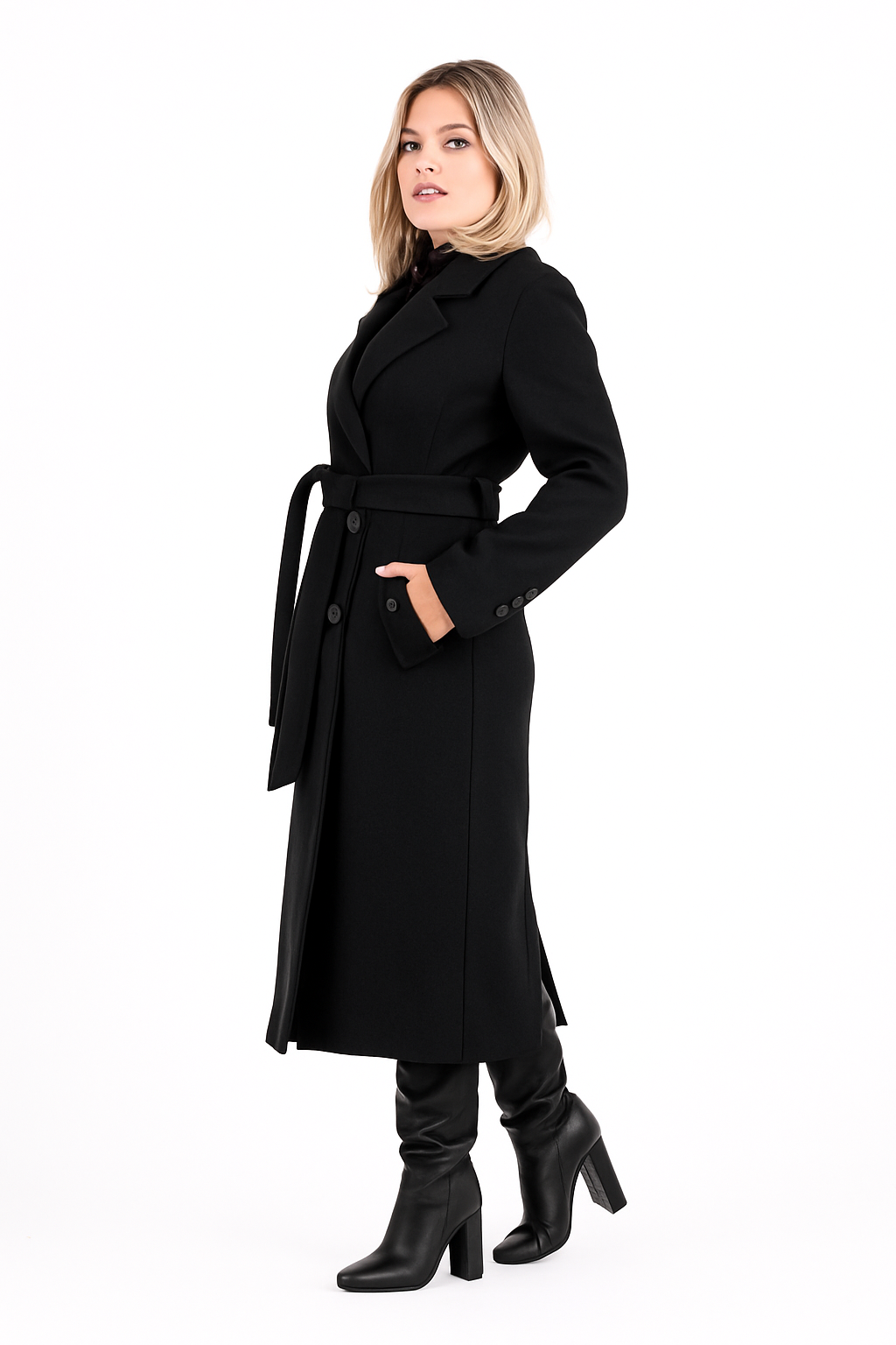Acest palton lung elegant negru este alegerea ideală pentru femeile care își doresc o piesă sofisticată, clasică și ușor de integrat în orice ținută.