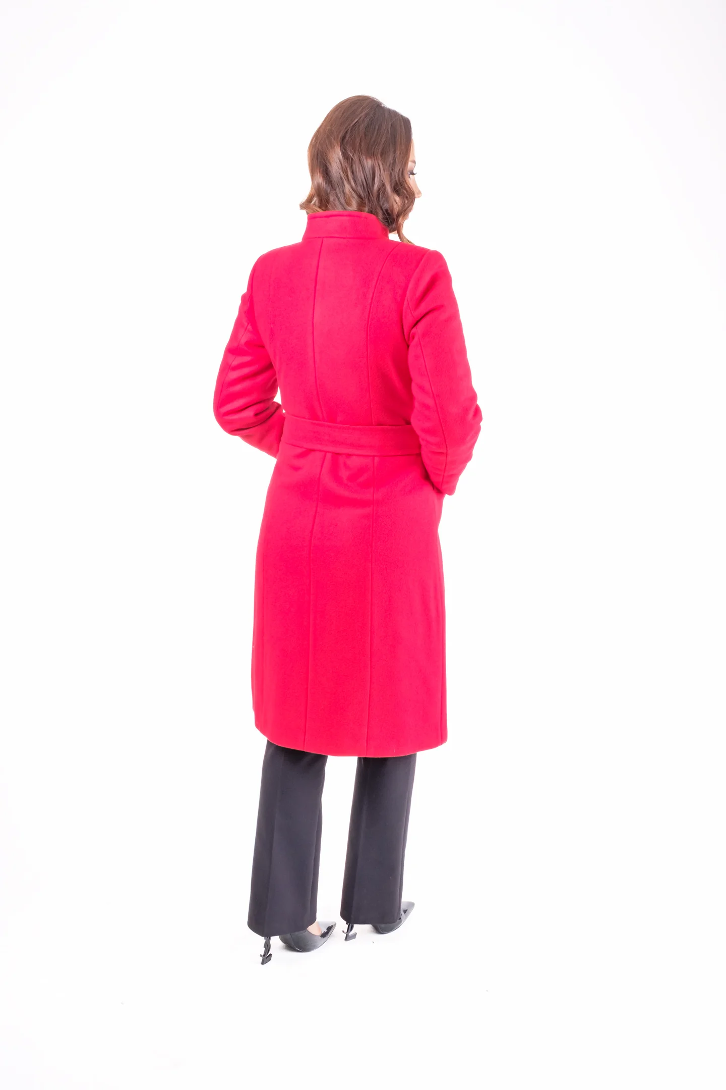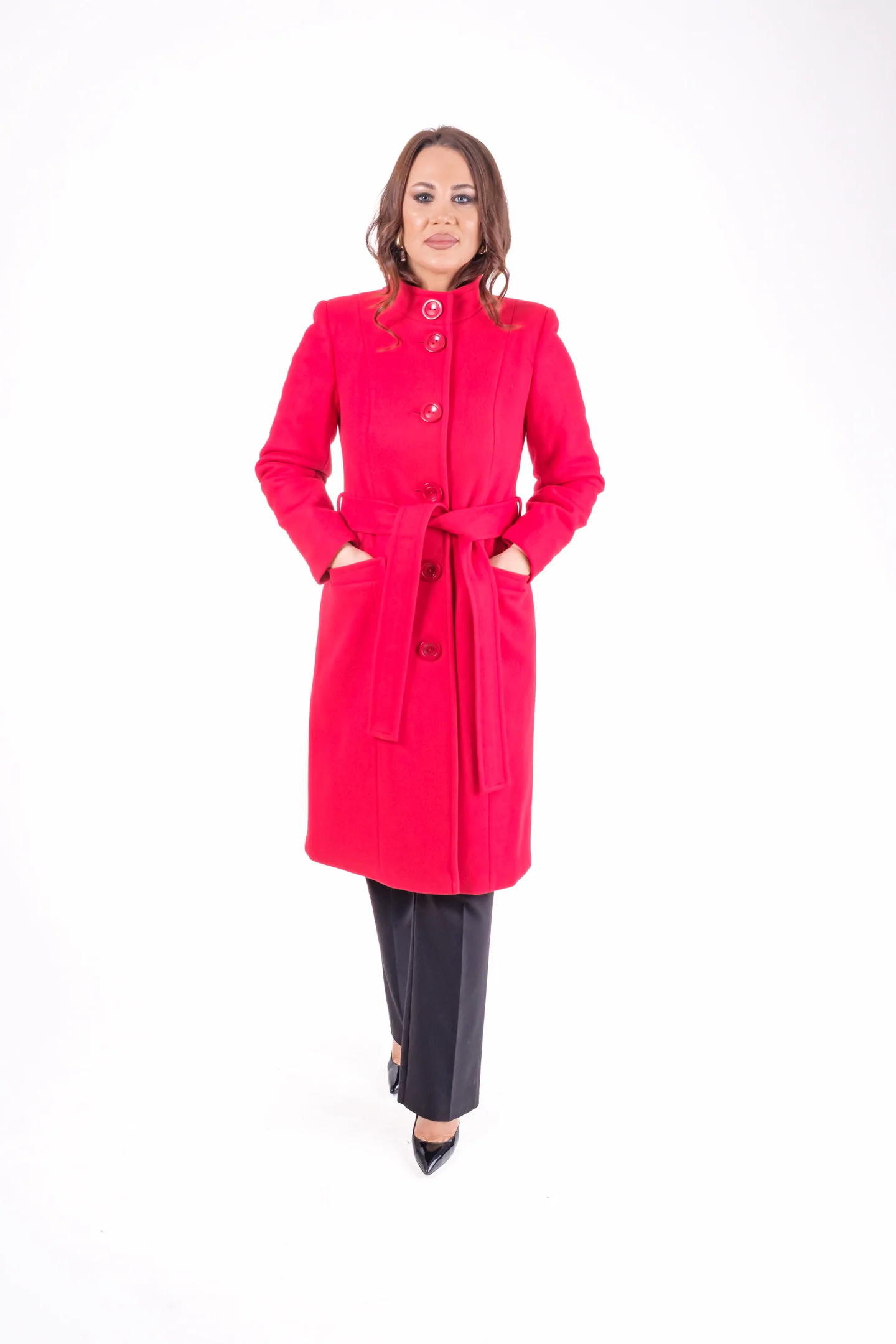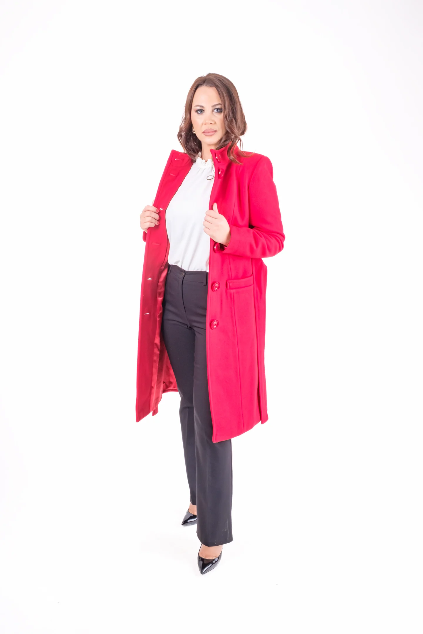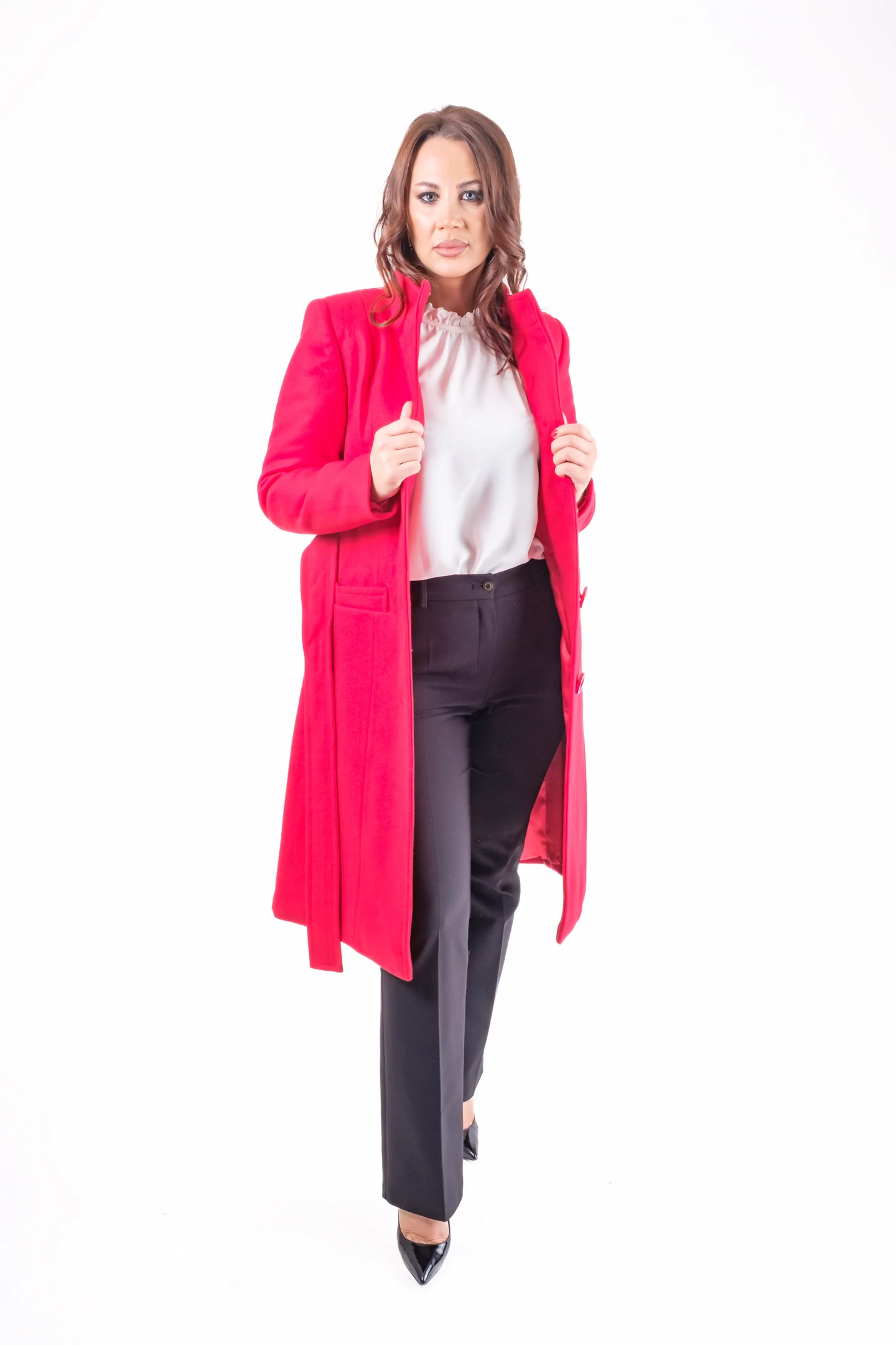 Acest palton roșu elegant este o piesă ideală pentru femeile care își doresc un look rafinat și modern în sezonul rece.