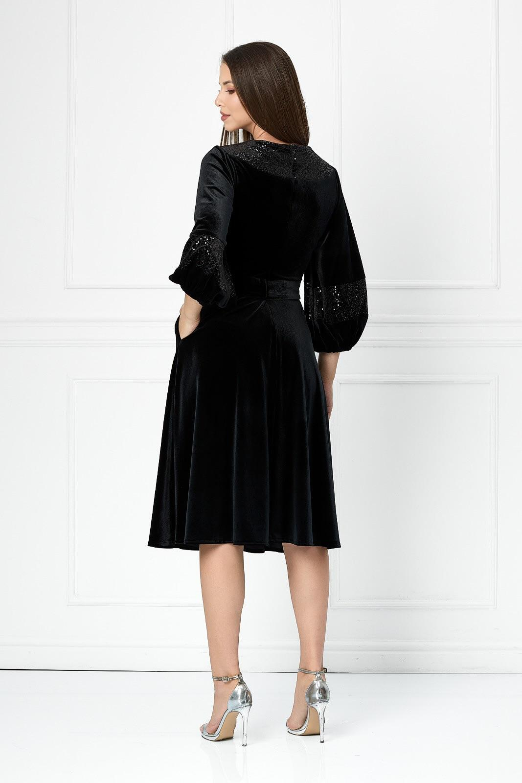 Rochia din catifea este alegerea perfectă pentru un look elegant și sofisticat. Confecționată din catifea moale și plăcută la atingere, aceasta evidențiază silueta prin croiala sa feminină și talia accentuată cu o curea elegantă.